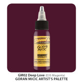 Этот пигмент представляет собой глубокий, насыщенный бордово-фиолетовый оттенок с мягким магентовым подтоном. Он одновременно выглядит благородно и выразительно, создавая ощущение роскоши и глубины цвета. Отлично подойдёт для смелых акцентов и тонких градиентов, а благодаря своей плотности может использоваться как для ярких деталей, так и для плавных переходов в татуировке.